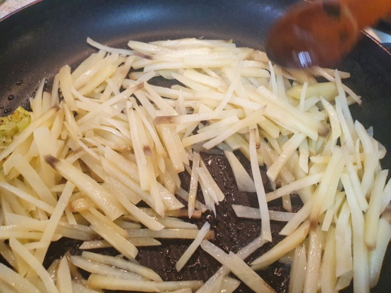- 감자를 먼저 볶아 표면을 코팅